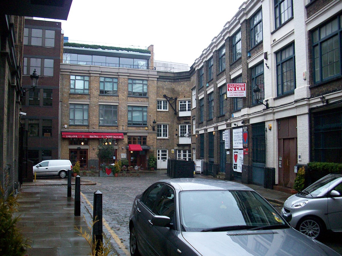 A photograph of Bleeding Heart Yard, London, taken January 16th 2010.